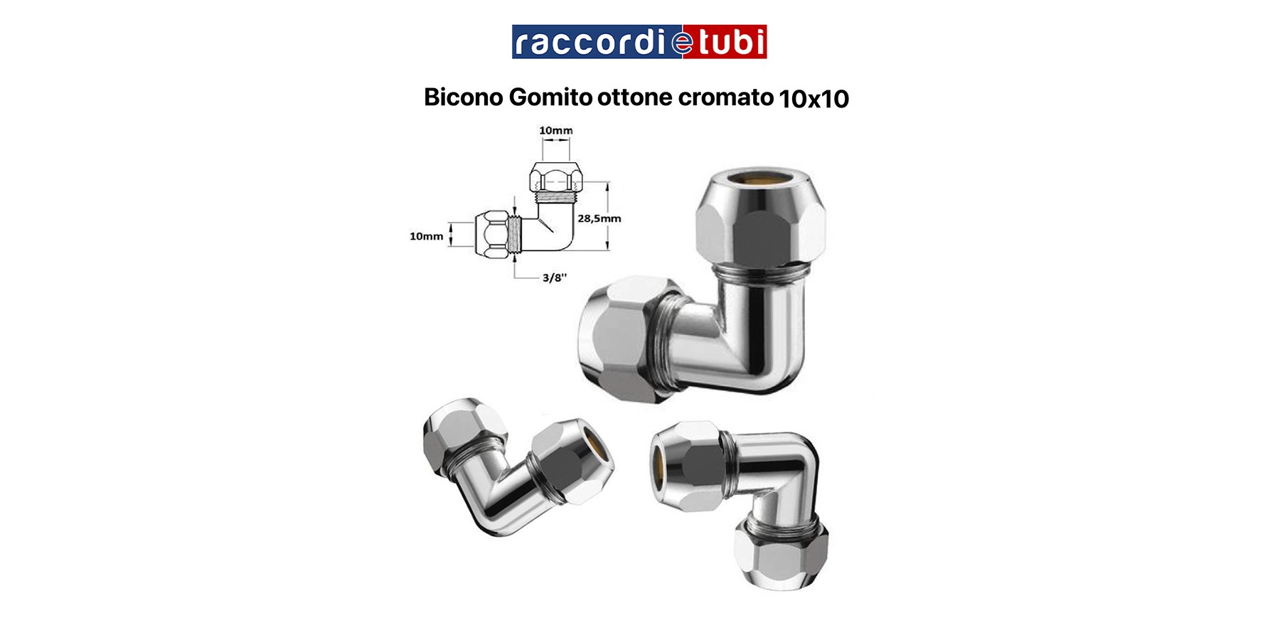 GOMITO BICONO 90' IN OTTONE CROMATO 10x10mm