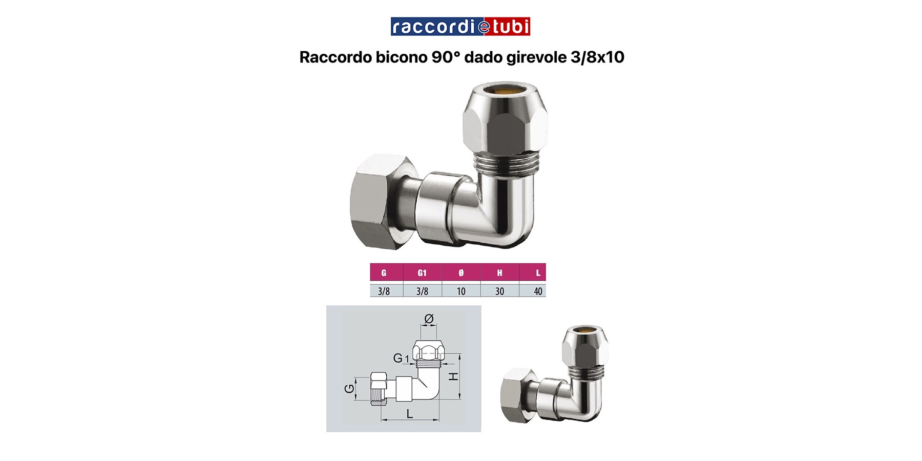 GOMITO BICONO CROMATO DIAMETRO 10X3/8 F.DADO GIREVOLE