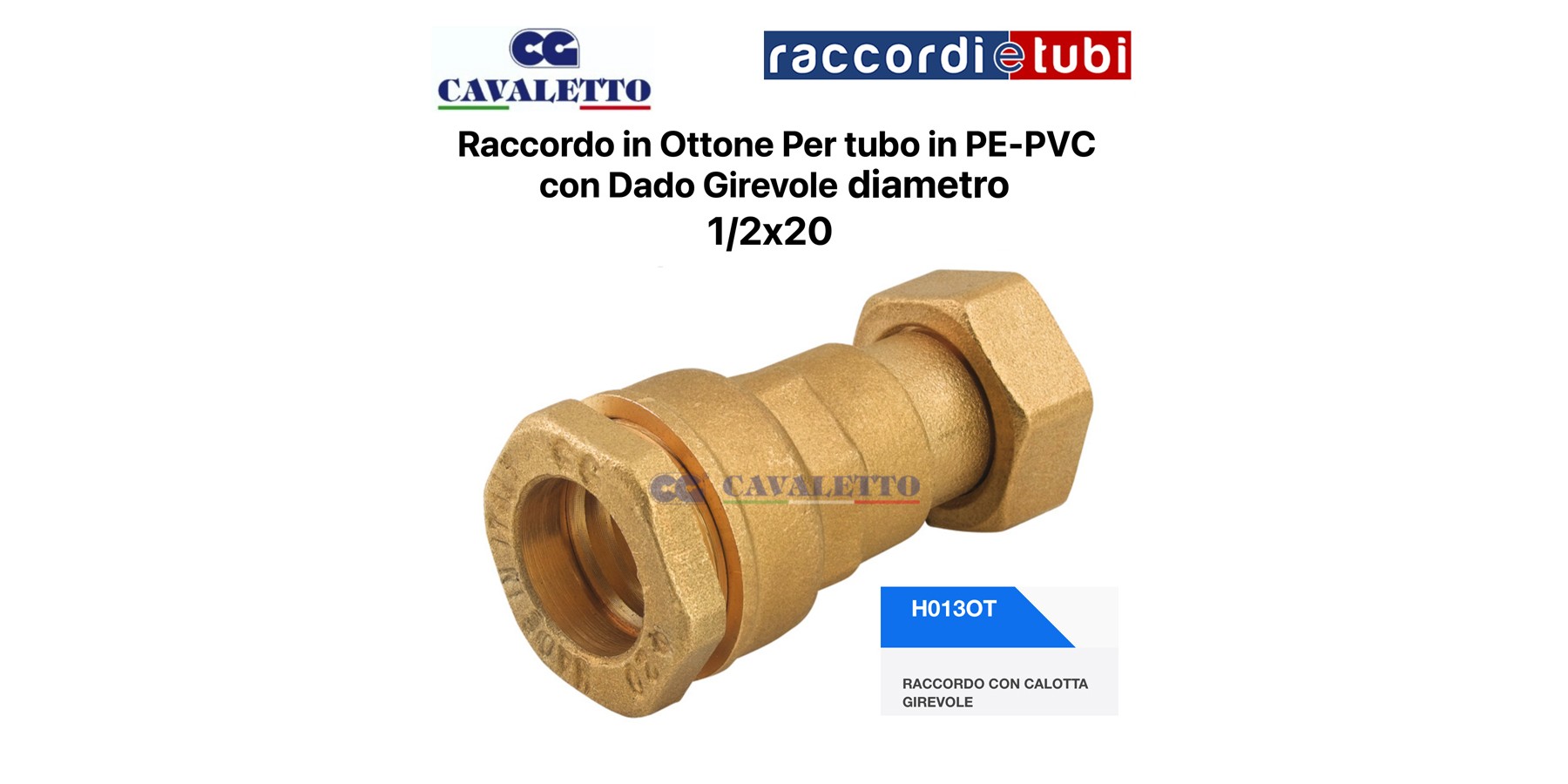 RACCORDO IN OTTONE CON CALOTTA GIREVOLE 1/2X20 PER TUBO IN PE*PVC