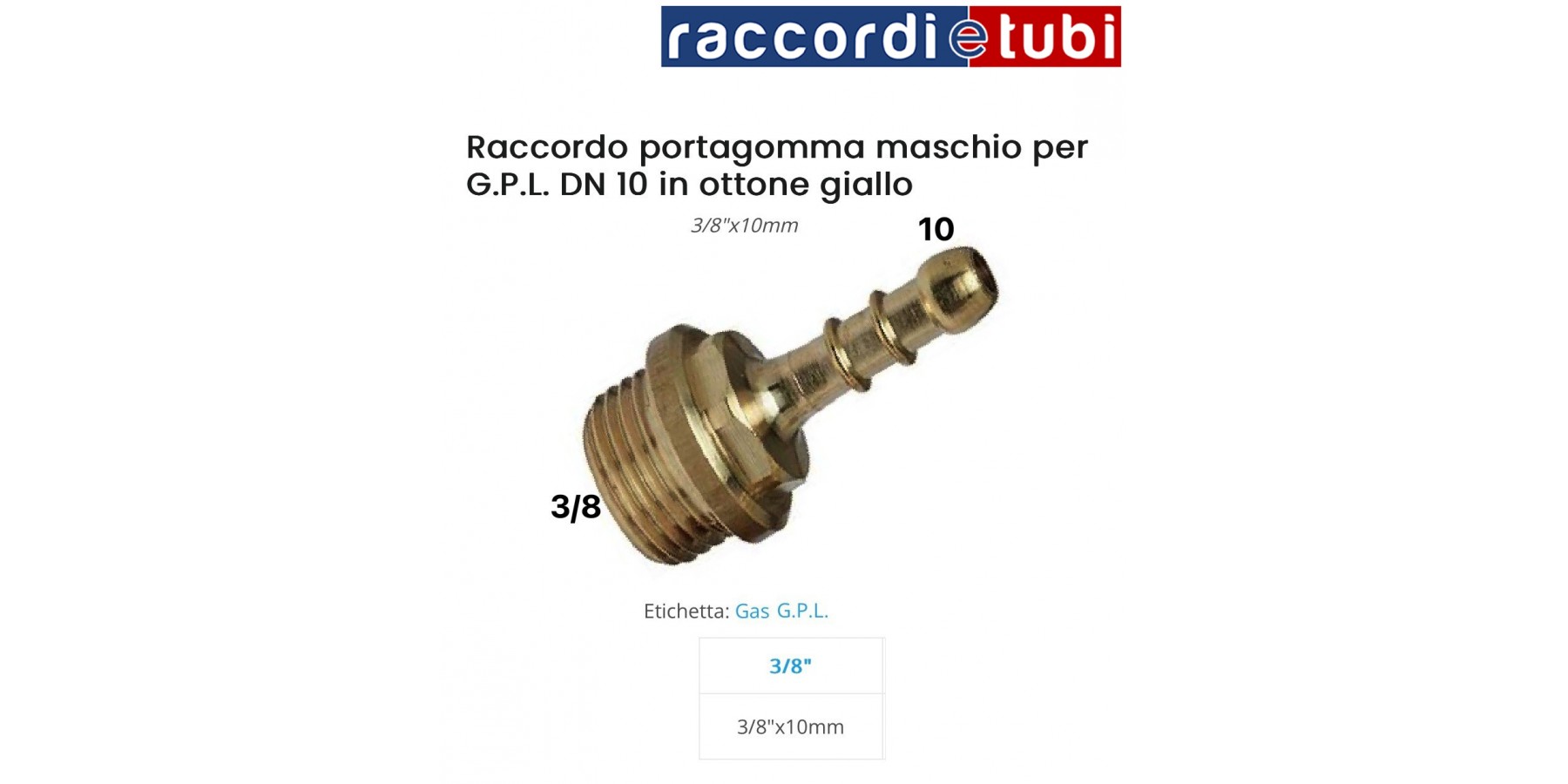Raccordo in ottone portagomma in ottone per gas GPL DN.10