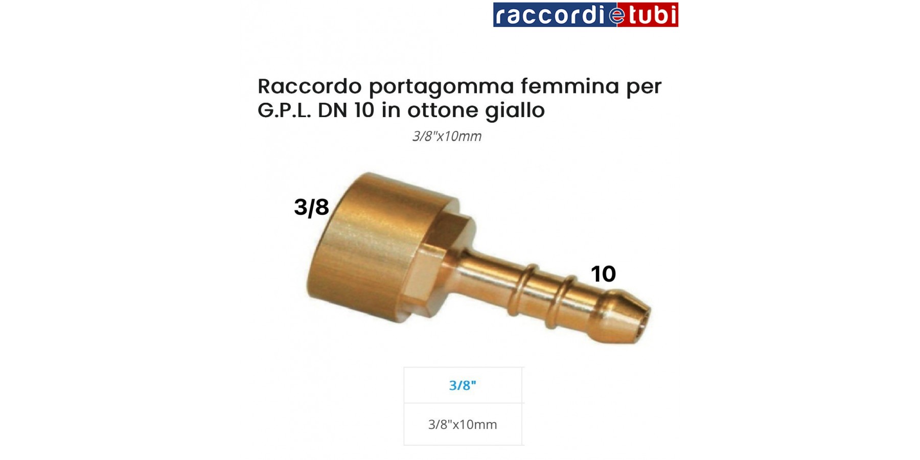 Raccordo in ottone portagomma in ottone per gas GPL DN.10