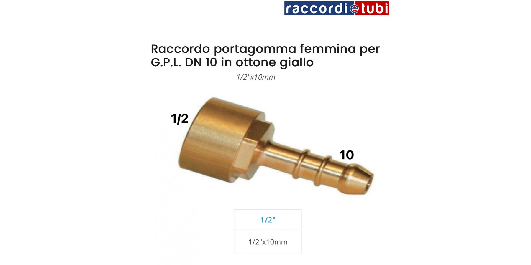 Raccordo in ottone portagomma in ottone per gas GPL DN.10