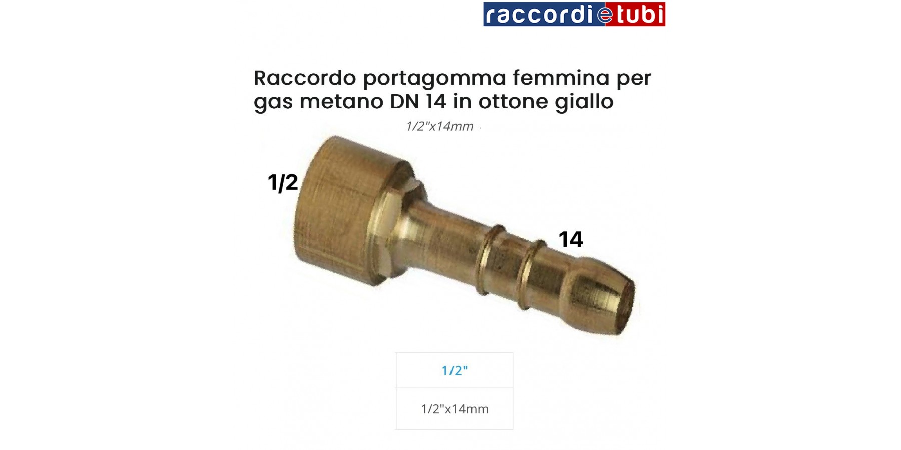 Raccordo in ottone portagomma in ottone per gas METANO DN.14