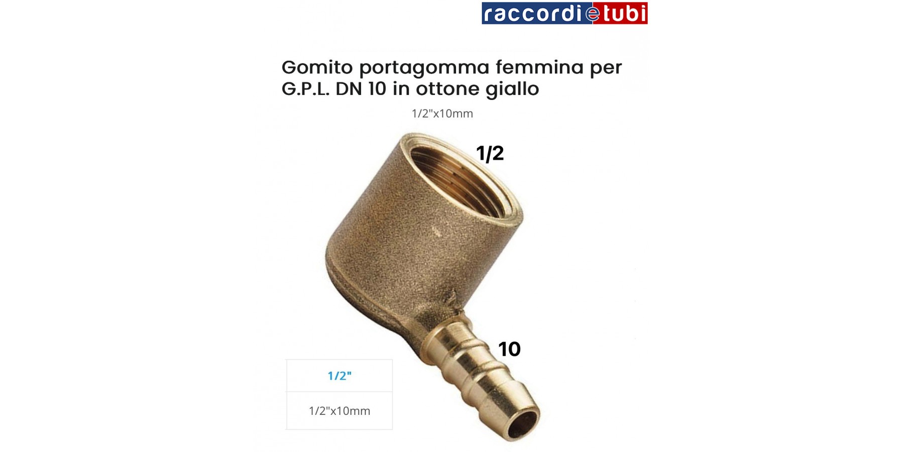Gomito portagomma in ottone curvo maschio per gas GPL DN.10