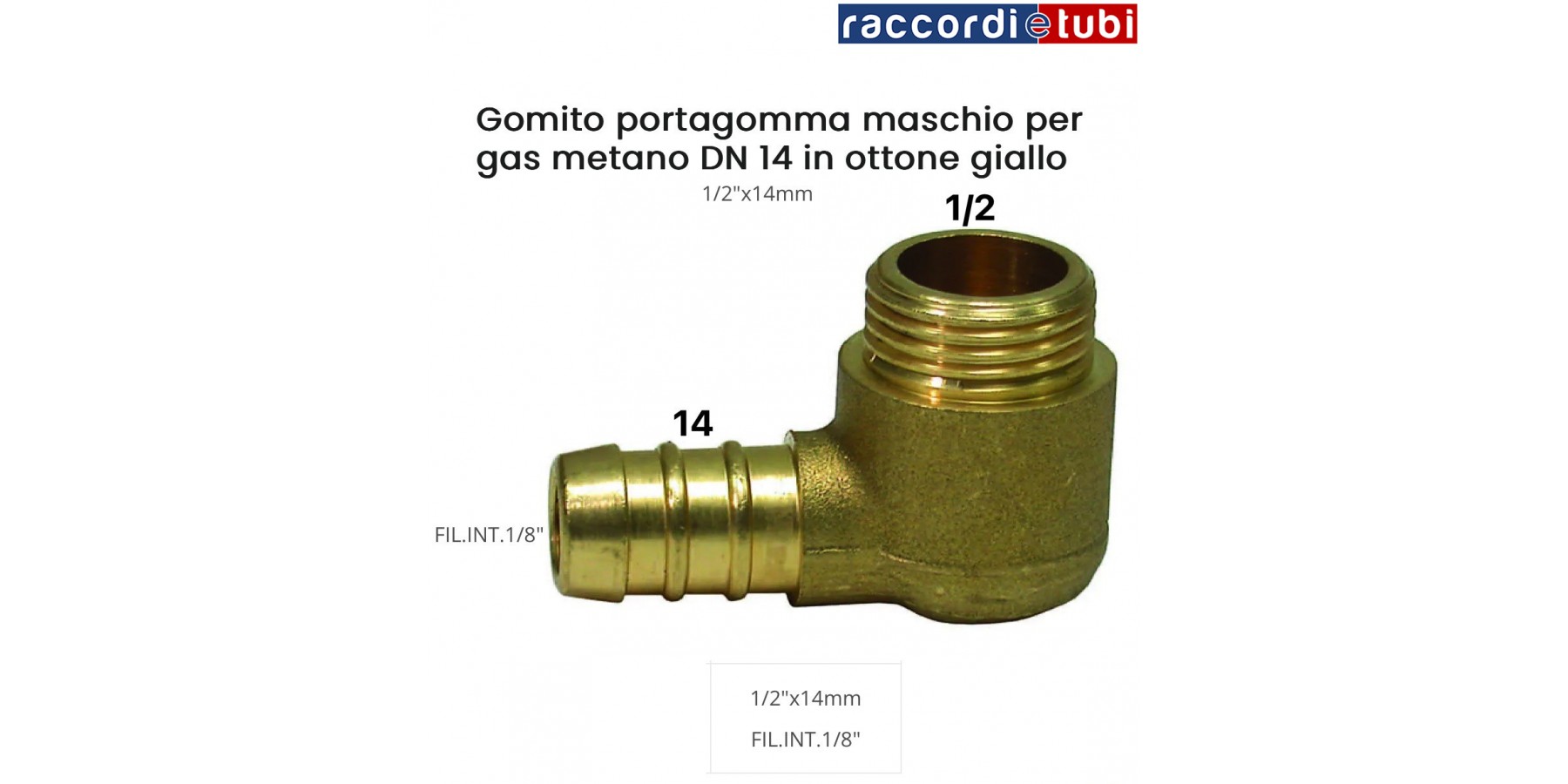 Gomito portagomma in ottone curvo maschio per gas metano DN.14