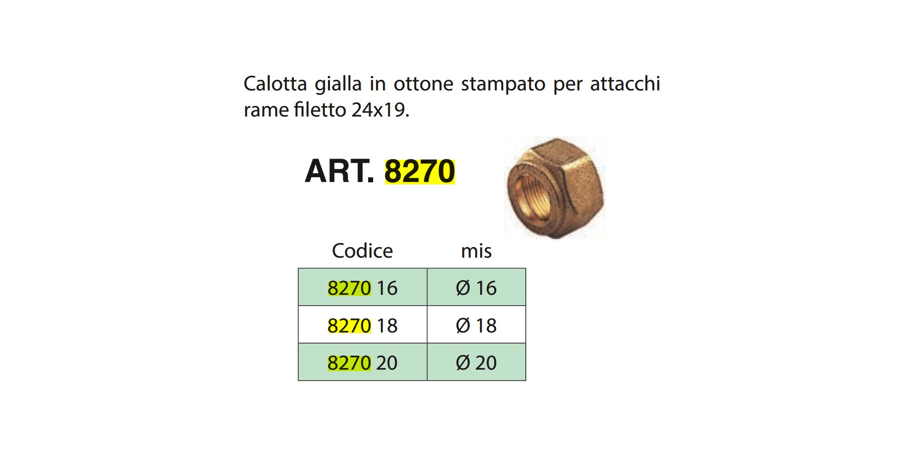 Calotta gialla in ottone stampato per attacchi rame fletto 24x19.8270 18