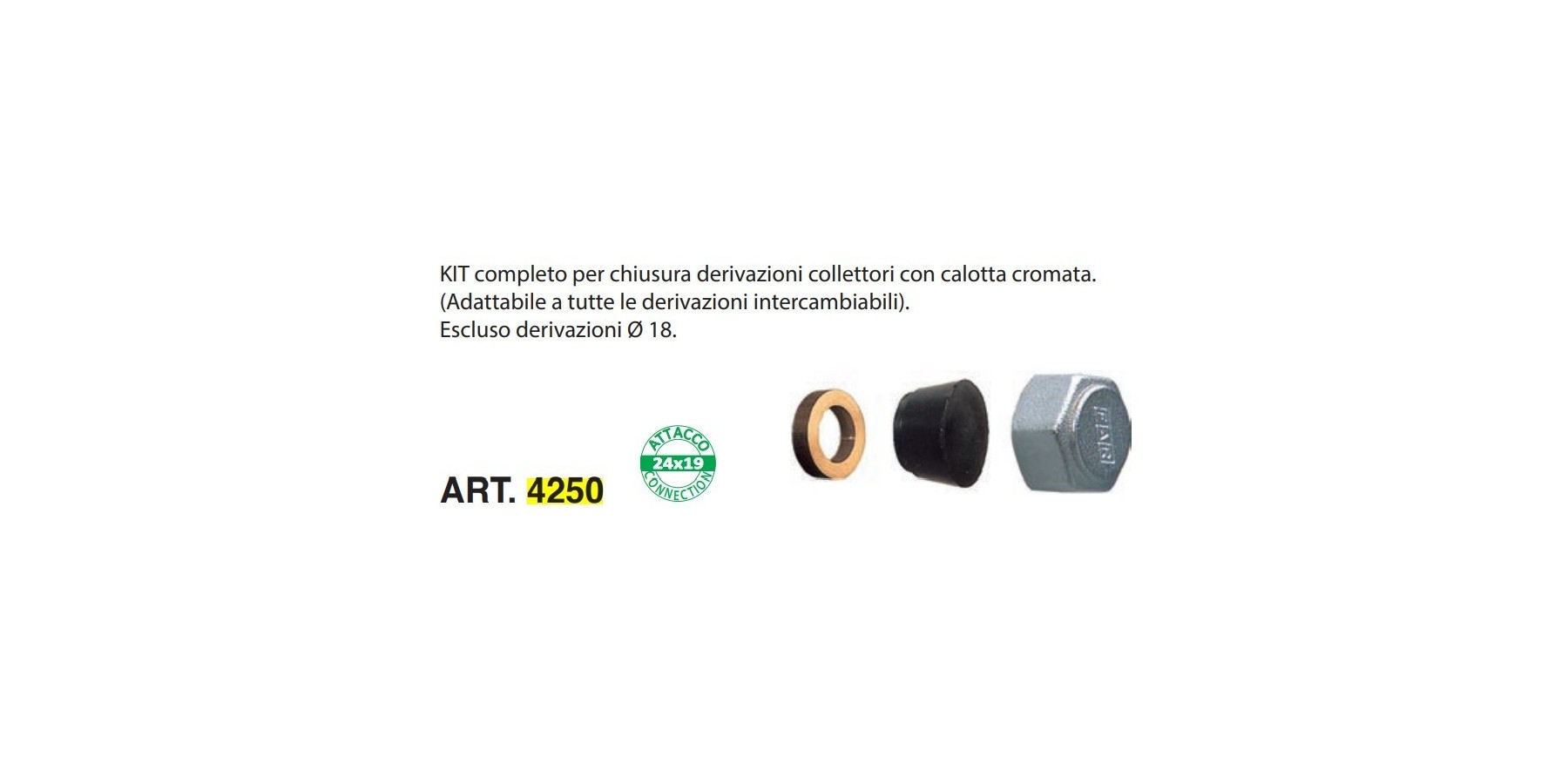 KIT completo per chiusura derivazioni collettori con calotta cromata. (Adattabile a tutte le derivazioni intercambiabili). Escluso derivazioni Ø 18.
