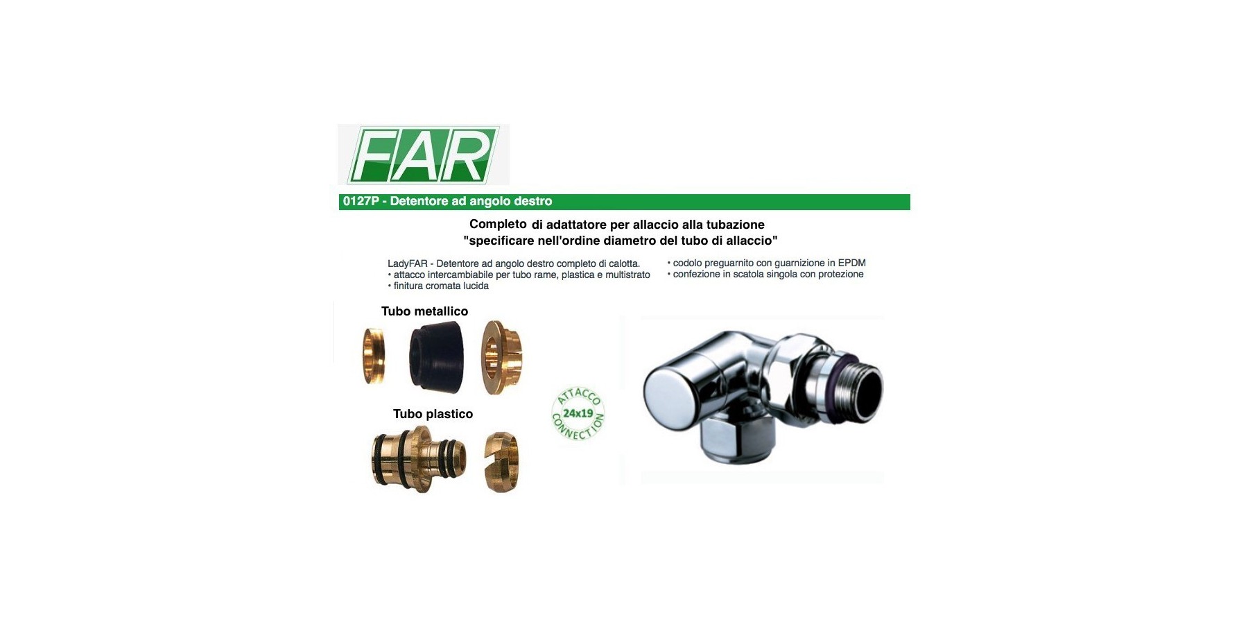 • Attacco intercambiabile per tubo rame, plastica e multistrato