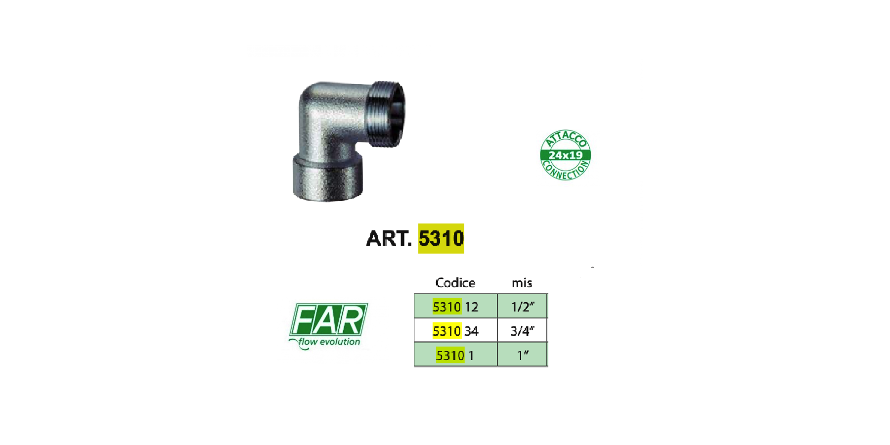 Gomito femmina cromato. • Corpo in ottone CW617N stampato • Attacco intercambiabile per tubo rame, plastica e multistrato