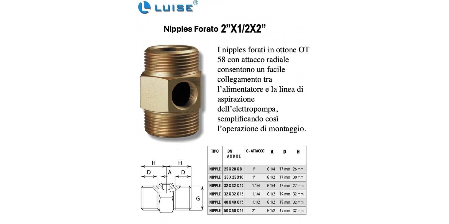 nipples forati in ottone OT 58 con attacco radiale consentono
