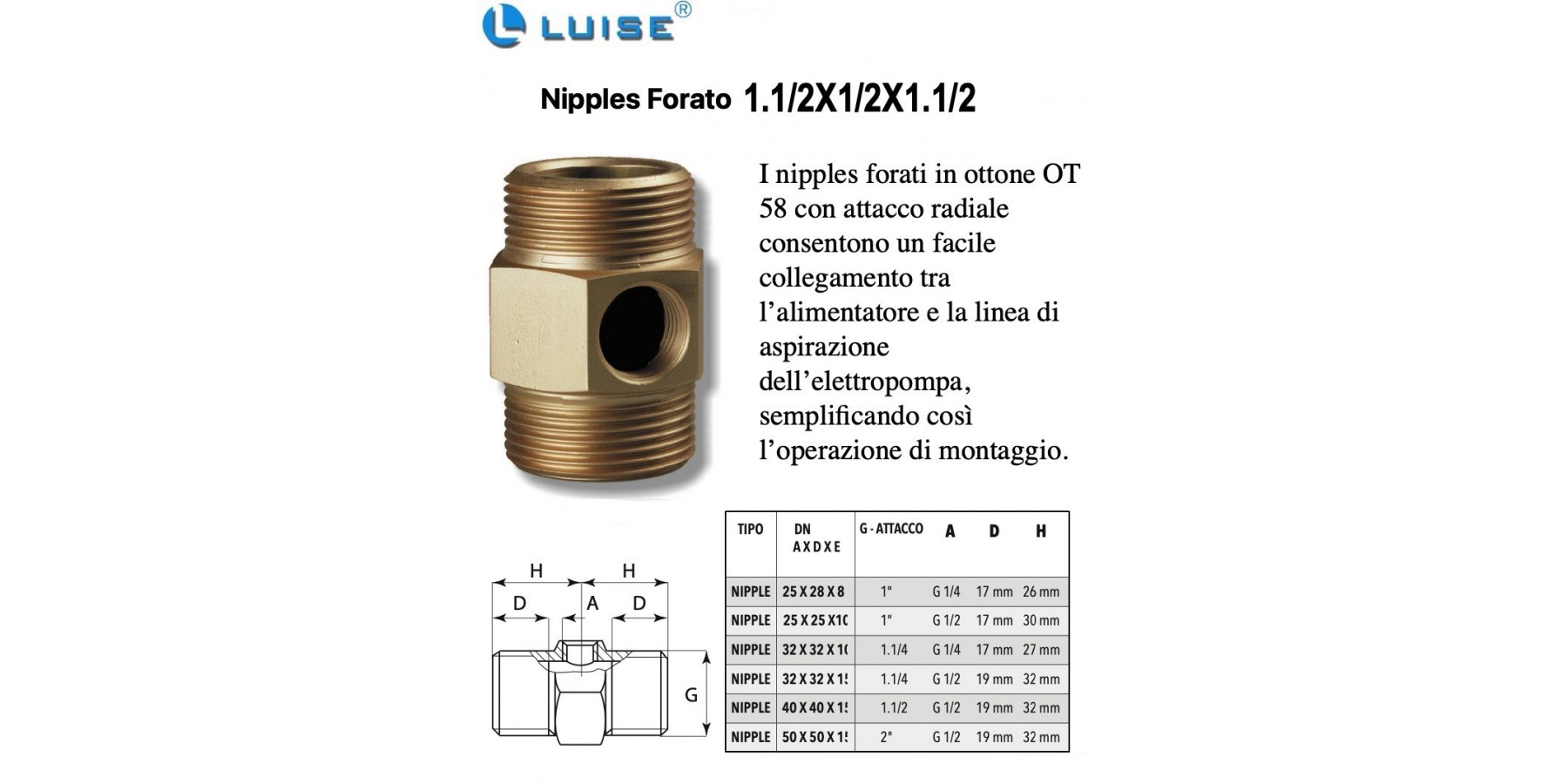 nipples forati in ottone OT 58 con attacco radiale consentono