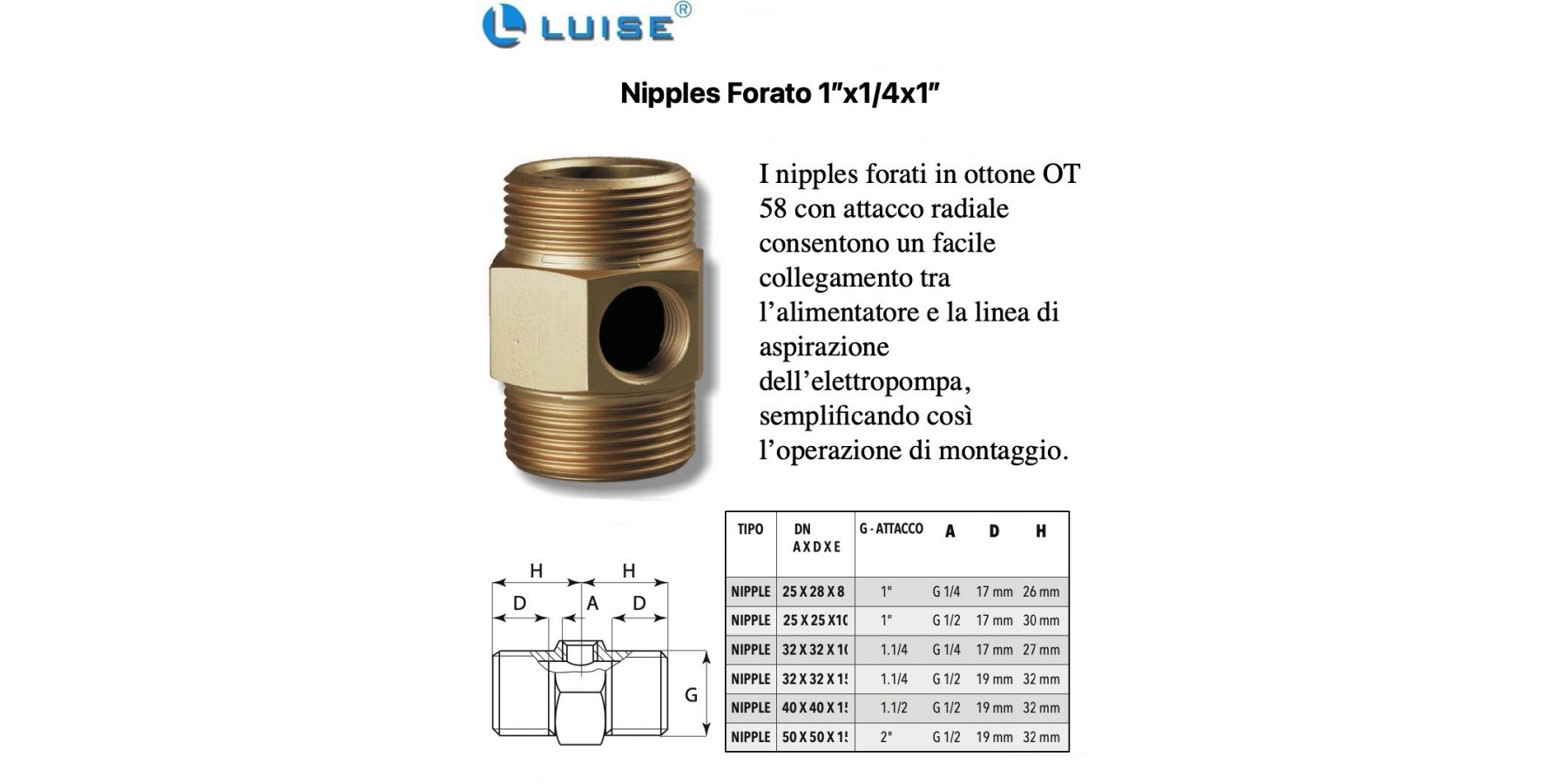 nipples forati in ottone OT 58 con attacco radiale consentono