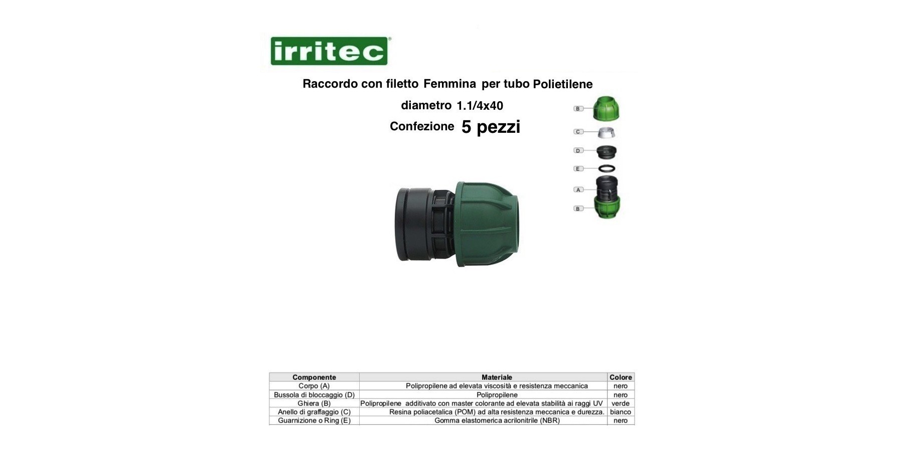 RACCORDO FEMMINA A COMPR.CONNECTO 40X1.1/4 5 P/Z