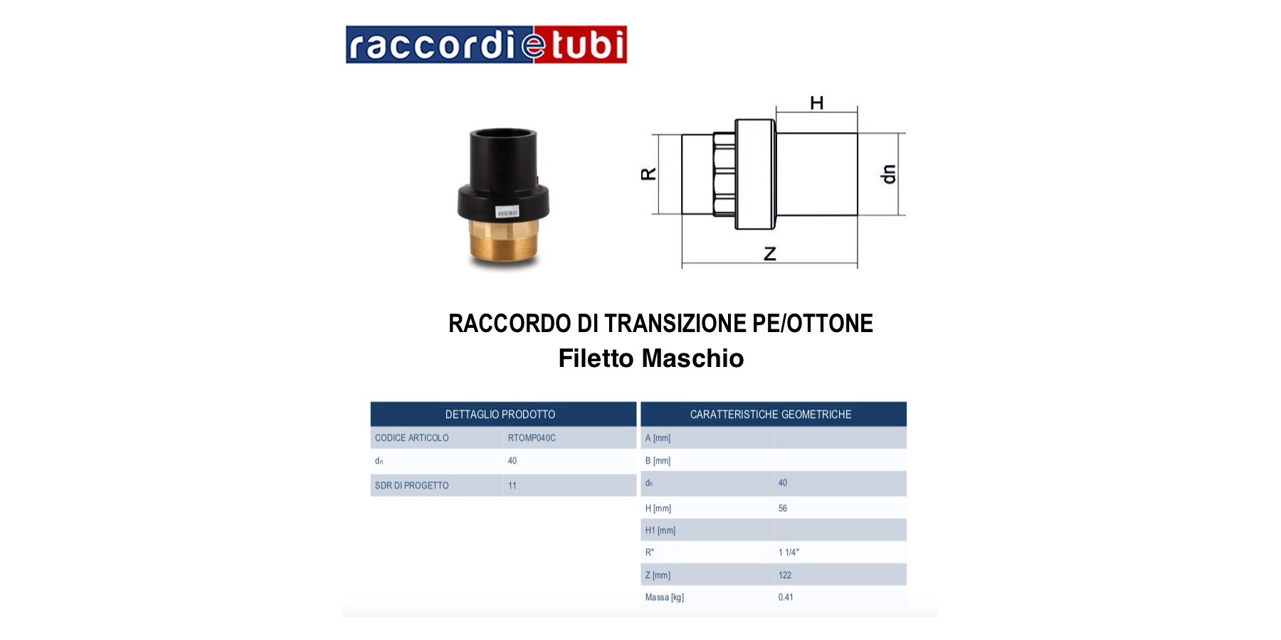 Principali caratteristiche: famiglia dei raccordi di transizione; PE100 nero e ottone; SDR 11; esecuzione stampata.