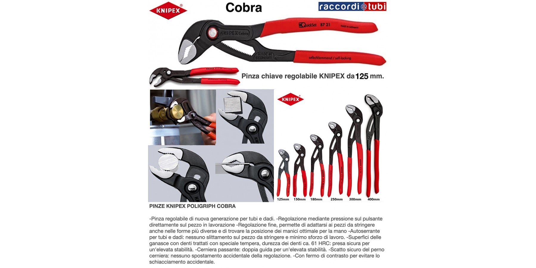 - Autoserrante per tubi e dadi: nessuno slittamento sul pezzo da stringere e minimo sforzo di lavoro