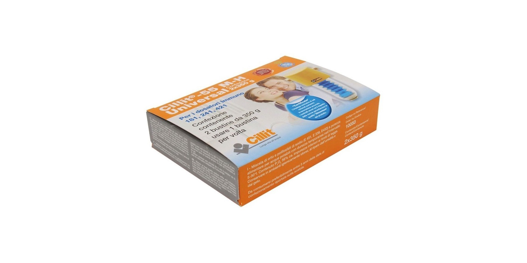 Confezione di sali polifosfati universali contenente 2 bustine sigillate da 350 grammi ciascuna. L'impiego di sali minerali purissimi, la lavorazione accurata, i controlli severi ed il rispetto delle norme garantiscono al prodotto una qualità di tipo alimentare, sinonimo di massima sicurezza ed igiene. Sali polifosfati universali con dosaggio calibrato (350gr) per dosatori quali Cillit Immuno 181/241,421 e/o similari. Sali minerali naturali in polvere con caratteristiche alimentari per acque incrostanti in grado di prevenire la formazione di incrostazioni calcaree e di corrosioni negli impianti per la produzione e distribuzione dell'acqua calda, di processo e/o potabile, ad uso tecnologico. Cillit 55M-H è in grado di risanare il vostro circuito idraulico incrostato eliminando i fenomeni corrosivi in atto tramite l'utilizzo continuativo.
