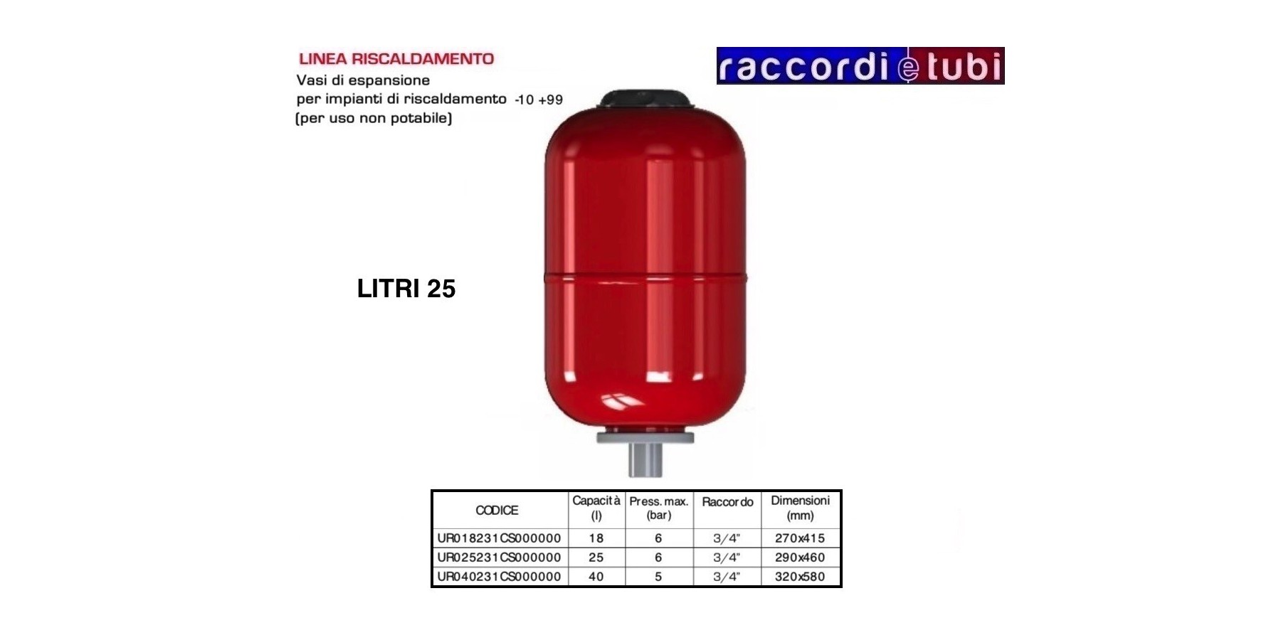 VASO DI ESPANSIONE VAREM CILINDRICO DA RISCALDAMENTO LT.25