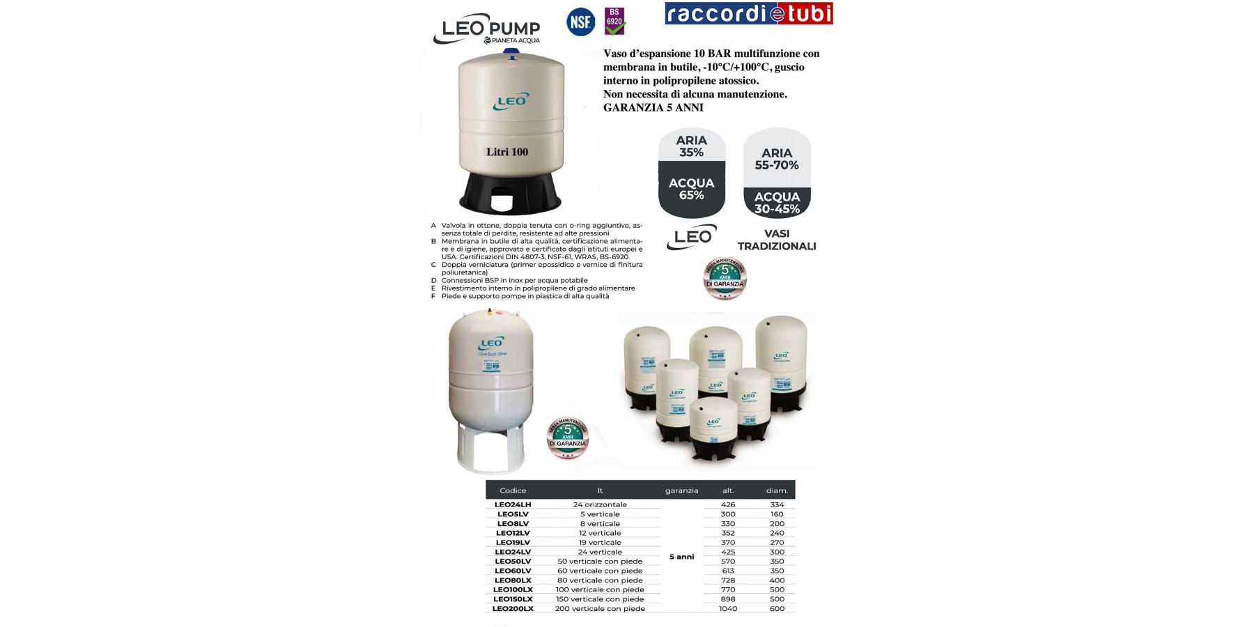 Vaso d’espansione 10 BAR multifunzione con membrana in butile, -10°C/+100°C, guscio interno in polipropilene atossico.Non necessita di alcuna manutenzione. GARANZIA 5 ANNI.