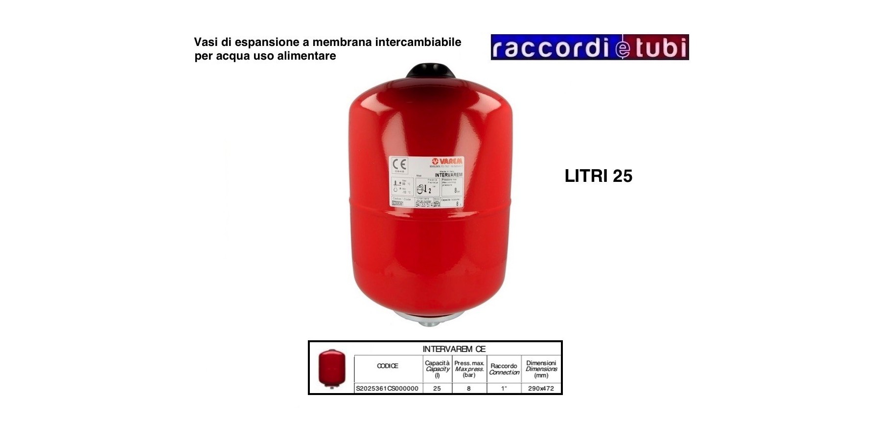 VASO DI ESPANSIONE VAREM CILINDRICO LT.25 PER ACQUA FREDDA