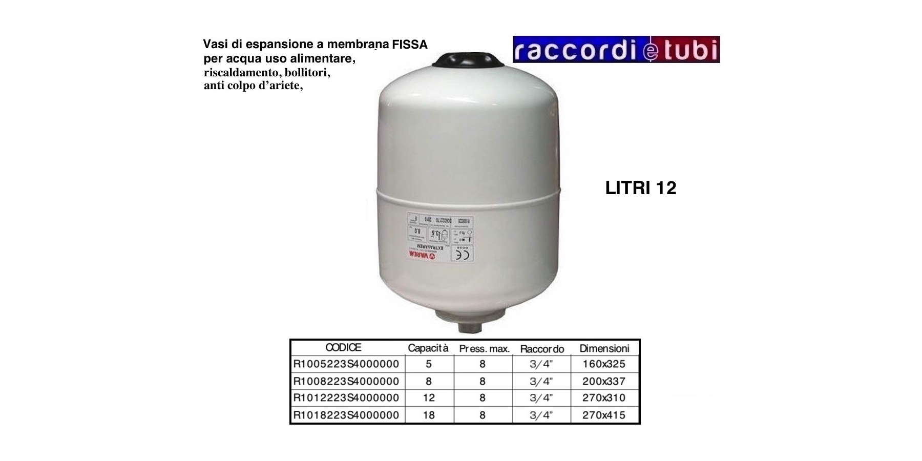 VASO DI ESPANSIONE VAREM CILINDRICO LT.12 MUTIFUNZIONE R1012223S4000000