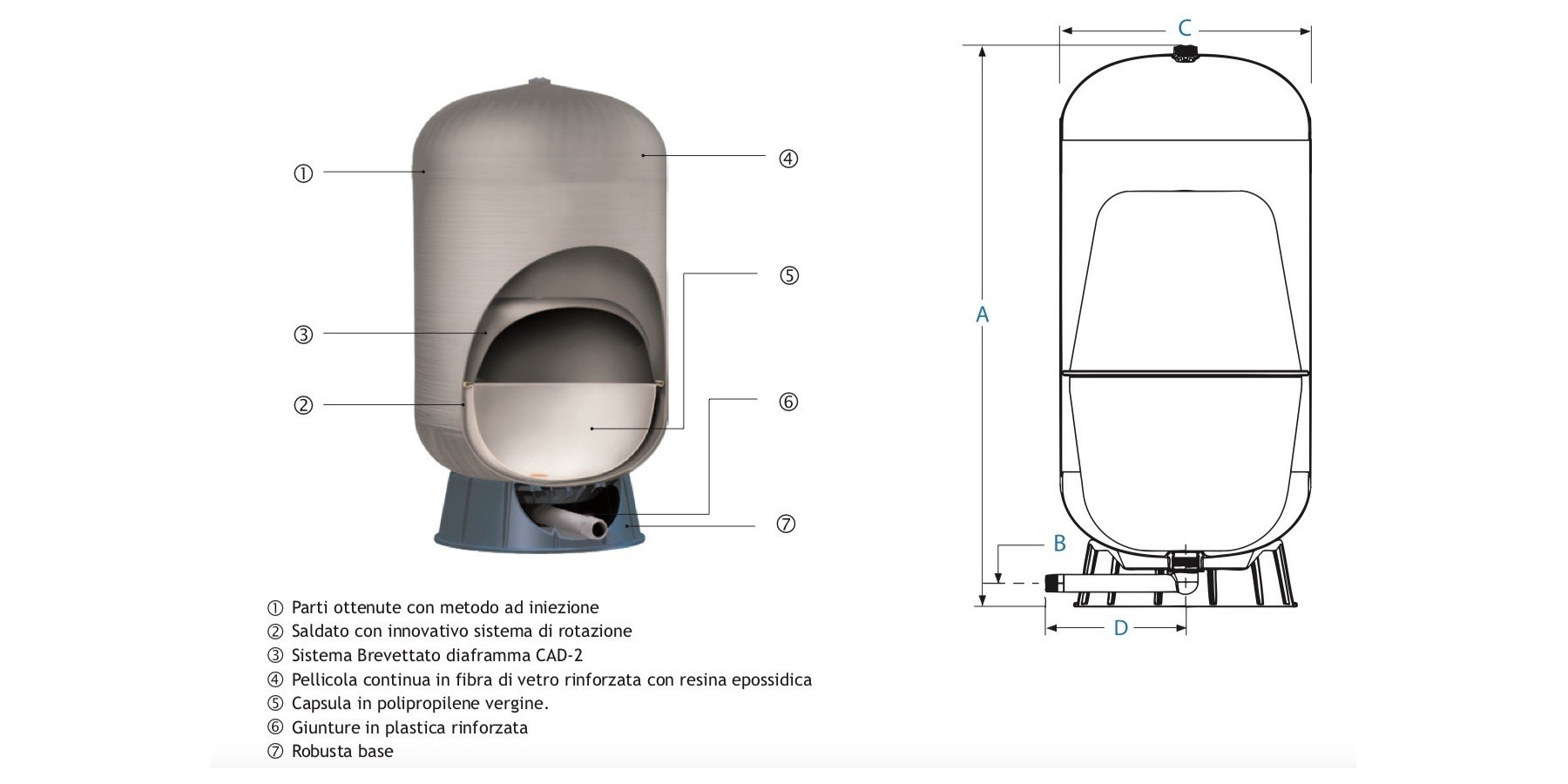 - Controlavaggio acqua pulita per sistemi aLa serie C2Lite CAD™ è progettata con il diaframma brevettato ad azione controllata dei vasi GWS della linea Challenger™ e offrono la leggerezza di un materiale composito dalle prestazioni comprovate.A differenza di altri serbatoi in materiale composito, realizzati con tecnologia ormai superata, il sistema brevettato del diaframma CAD-2 è più resistente, non si rompe e non si deteriora. C2Lite CAD™ è dotato di una speciale membrana di butile al 100% altamente resistente al cloro con capsula in co-polimero di polipropilene modellato con precisione che garantisce una completa separazione dell’aria dall’acqua. Il design brevettato assicura ai vasi d’espansione di qualsiasi volumetria di avere un volume d’acqua opportunamente dimensionato per ogni esigenza.Facile da installare, resistente alle intemperie e progettata per resistere anche a condizioni ambientali estreme, la linea C2Lite CAD™ non ha rivali in termini di prestazioni e di durata e si presenta come la migliore soluzione composita di alta qualità attualmente disponibile sul mercato.Come tutti i prodotti GWS, anche i vasi C2Lite CAD™ sono soggetti a test di qualità lungo tutto il processo di produzione per assicurarne l’integrità strutturale.