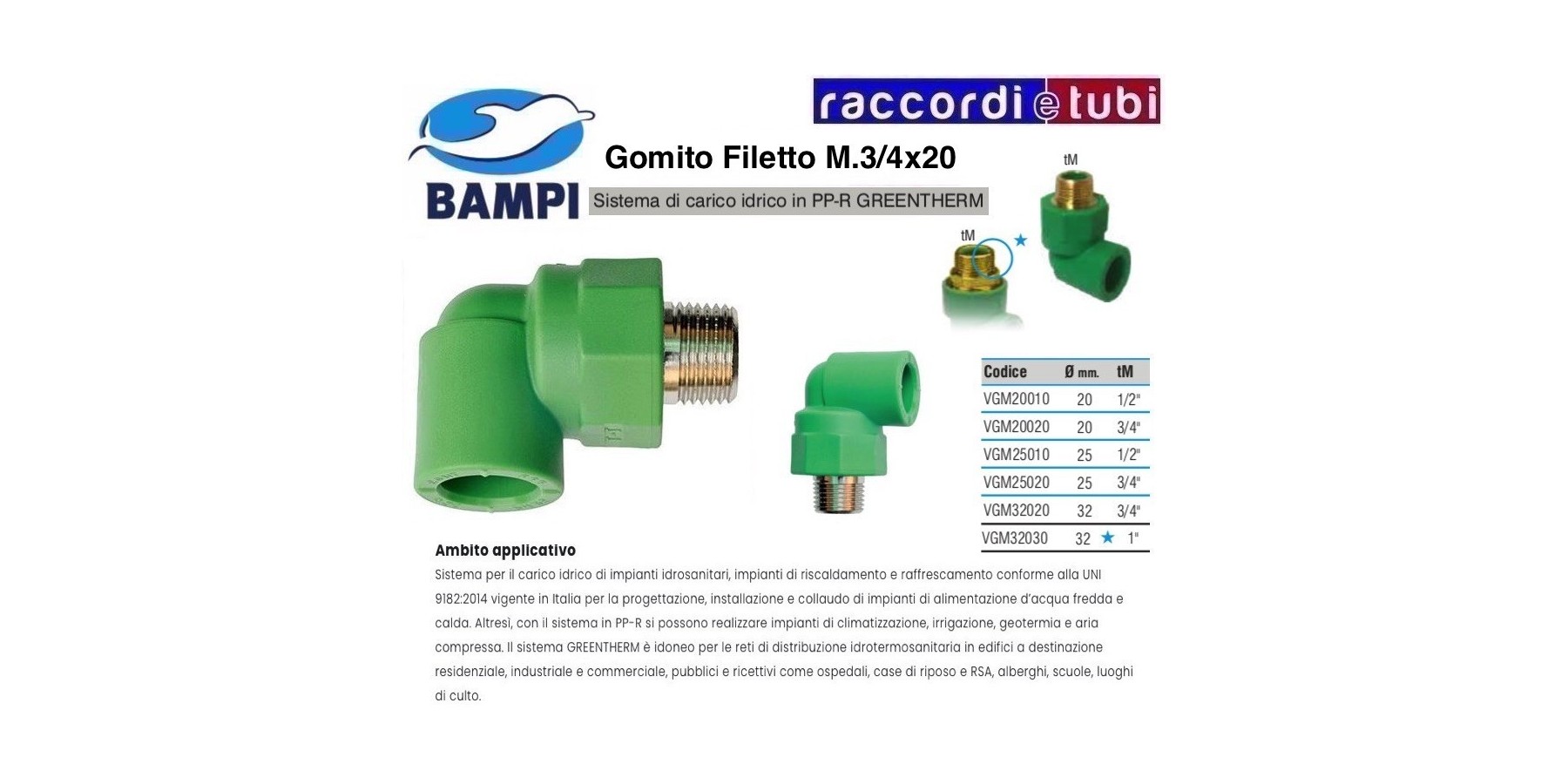 Utilizzato da 25 anni nella distribuzione di acqua calda e fredda, il sistema in polipropilene random GREENTHERM offre caratteristiche fisiche meccaniche di assoluta affidabilità. La gamma GREENTHERM di Bampi offre diametri da 20, 25, 32, 40, 50, 63, 75, 90 e 110 mm. con 4 differenti tipologie di tubazioni compatibili con un’unica gamma di raccordi a saldare: