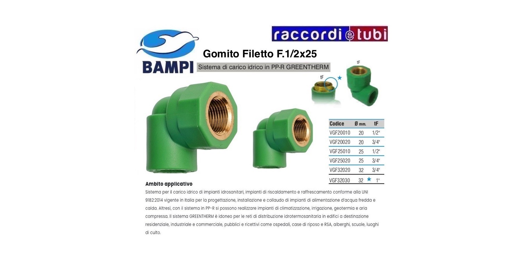 Utilizzato da 25 anni nella distribuzione di acqua calda e fredda, il sistema in polipropilene random GREENTHERM offre caratteristiche fisiche meccaniche di assoluta affidabilità. La gamma GREENTHERM di Bampi offre diametri da 20, 25, 32, 40, 50, 63, 75, 90 e 110 mm. con 4 differenti tipologie di tubazioni compatibili con un’unica gamma di raccordi a saldare: