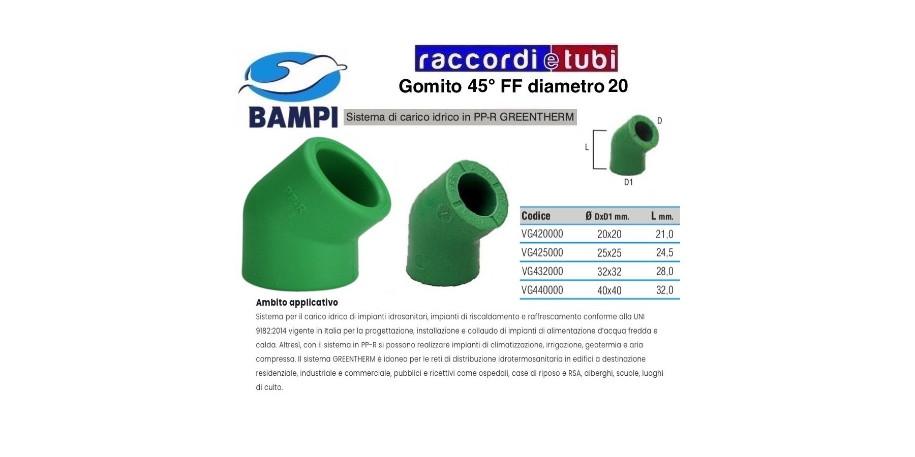 Utilizzato da 25 anni nella distribuzione di acqua calda e fredda, il sistema in polipropilene random GREENTHERM offre caratteristiche fisiche meccaniche di assoluta affidabilità. La gamma GREENTHERM di Bampi offre diametri da 20, 25, 32, 40, 50, 63, 75, 90 e 110 mm. con 4 differenti tipologie di tubazioni compatibili con un’unica gamma di raccordi a saldare: