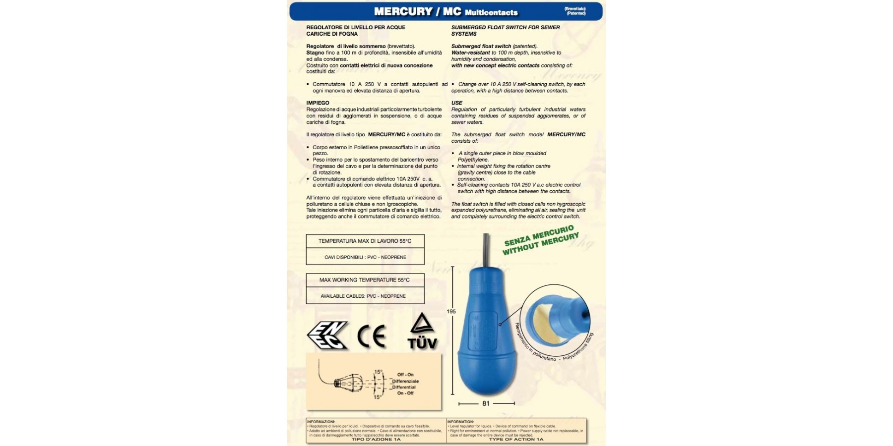 Il regolatore di livello tipo MERCURY/MC è costituito da: