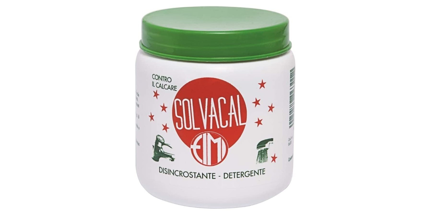 SOLVACAL è un prodotto in polvere per la rimozione del calcare da sanitari, WC, docce, rubinetterie, superfici in acciaio inox, ecc. Diluito in acqua può essere utilizzato per la pulizia di scambiatori, tubazioni, macchine da caffè, ecc