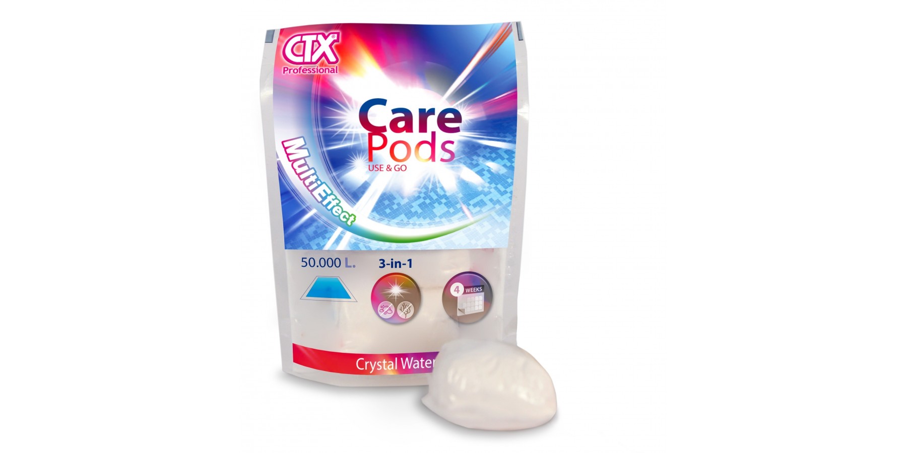 Per la corretta manutenzione consigliamo di usare una dose di Care Pods a settimana ogni 50 m3, in aggiunta al normale trattamento di disinfezione per mantenere l’acqua della piscina trasparente e libera da alghe e da residui di oli e creme per il corpo. Ricordiamo anche che Care Pods è compatibile con tutti i sistemi di disinfezione.