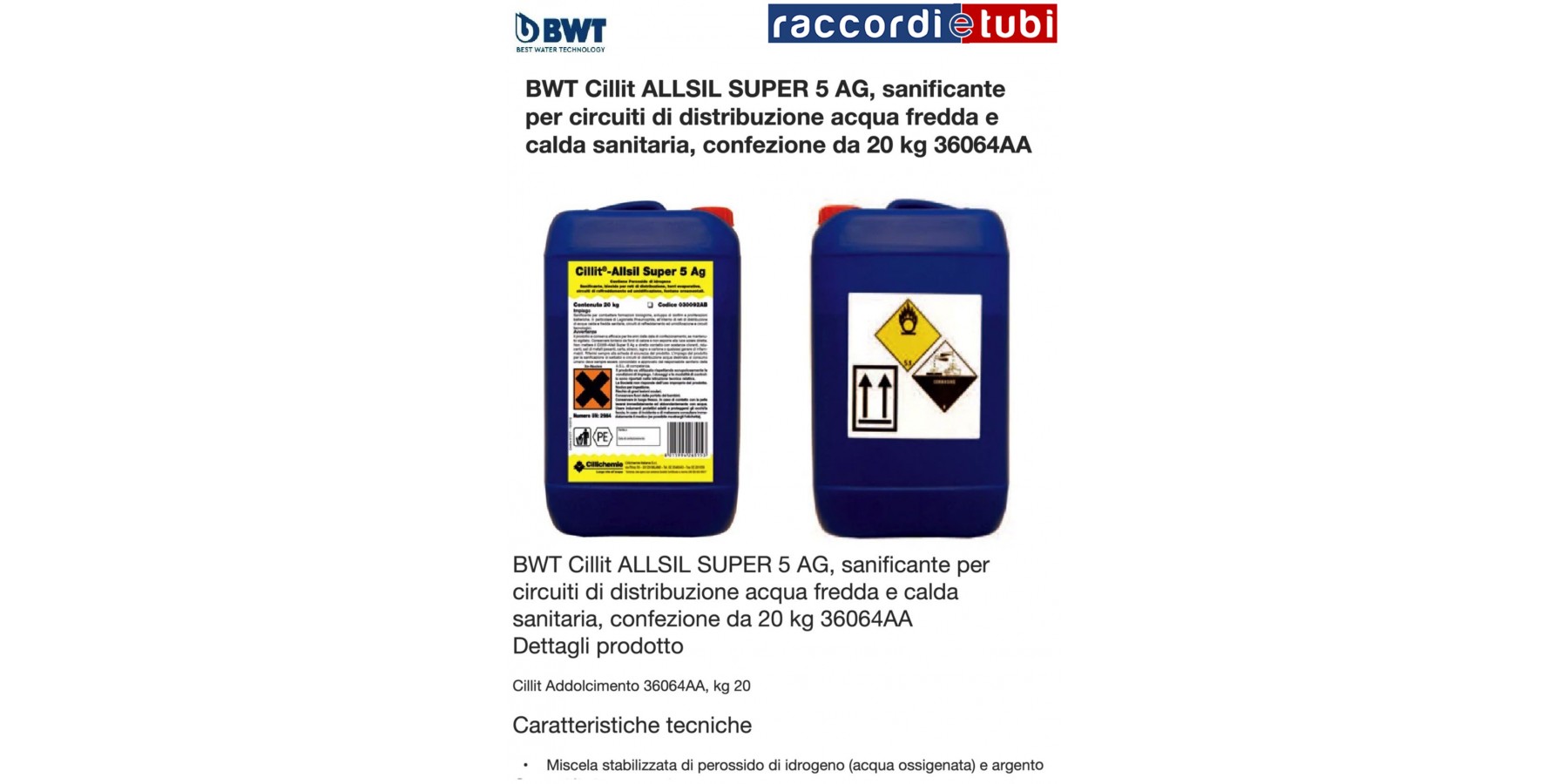 BWT Cillit ALLSIL SUPER 5 AG, sanificante per circuiti di distribuzione acqua fredda e calda sanitaria, confezione da 20 kg 36064AA