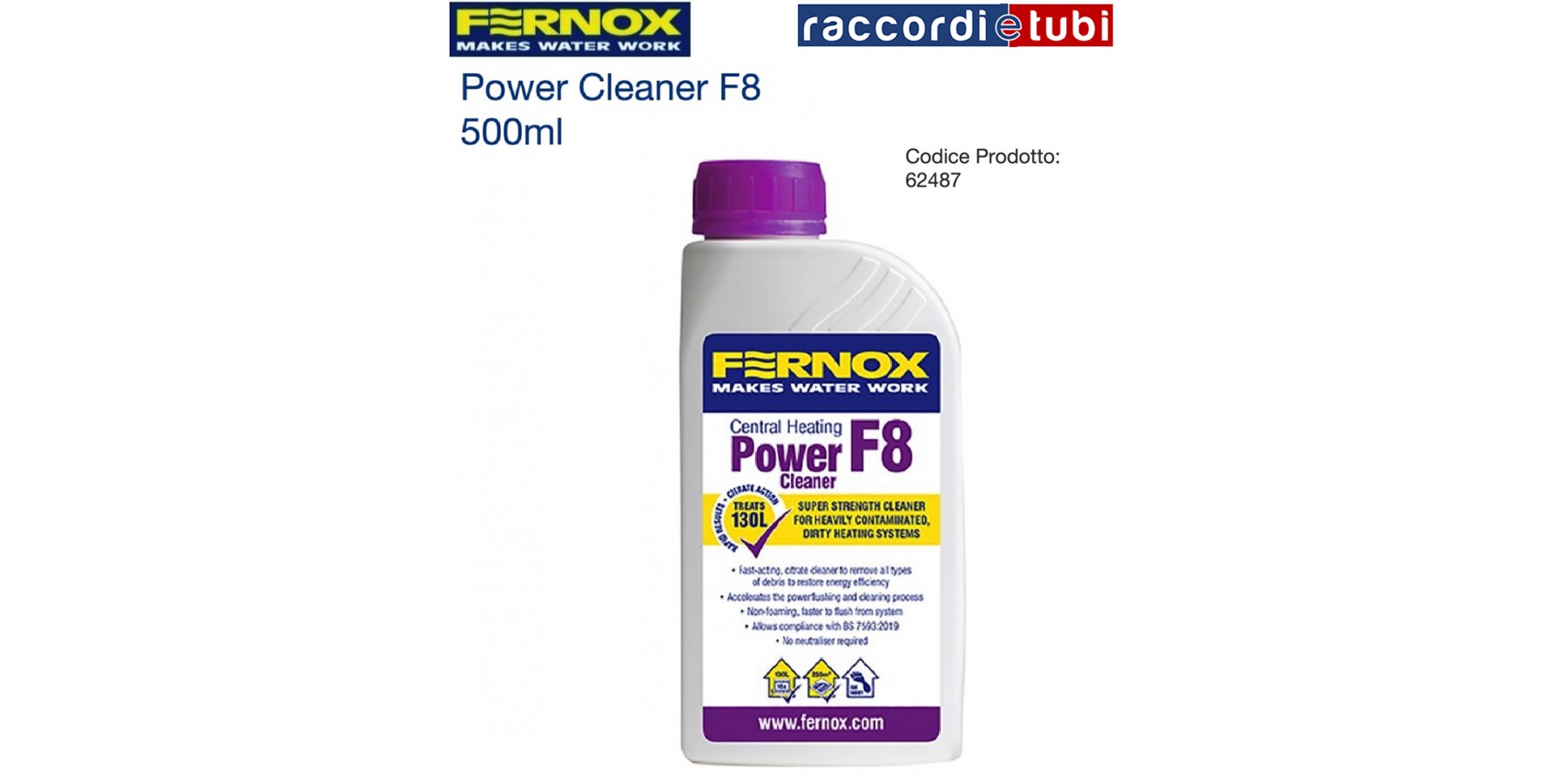 Un flacone da 500 ml di Power Cleaner F8 è sufficiente per pulire un grande impianto di riscaldamento centralizzato domestico (130 litri) che copre il 97% del patrimonio immobiliare domestico del Regno Unito. Applicazioni aggiuntive/ripetute di Power Cleaner F8 potrebbero essere necessarie per impianti che hanno più di 130 litri o 16 radiatori, o se gli impianti sono molto fangosi.