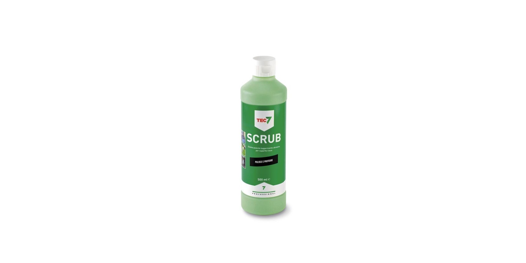 - Applicare SCRUB su un panno umido, strofinare sulla superficie fino al formarsi della schiuma; strofinare esercitando maggiore pressione dove necessario.