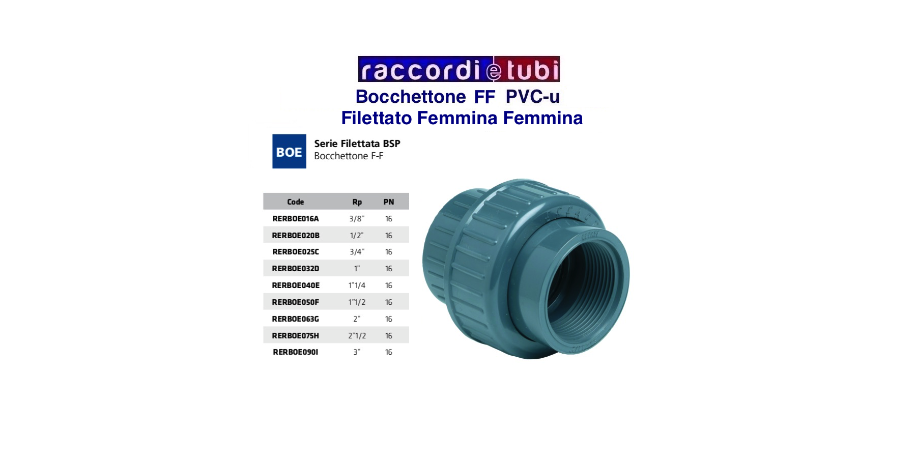 Bocchettone in PVC-u FF Femmina Femmina Filettato PN16