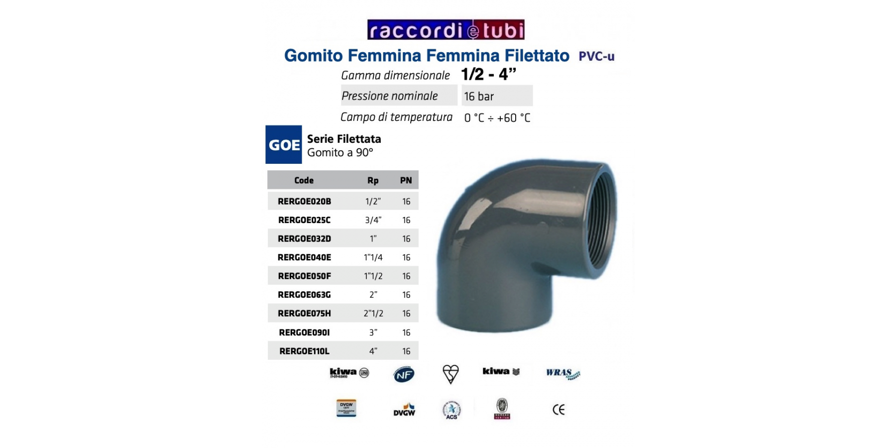 Gomito a 90° in PVC femmina femmina filettato