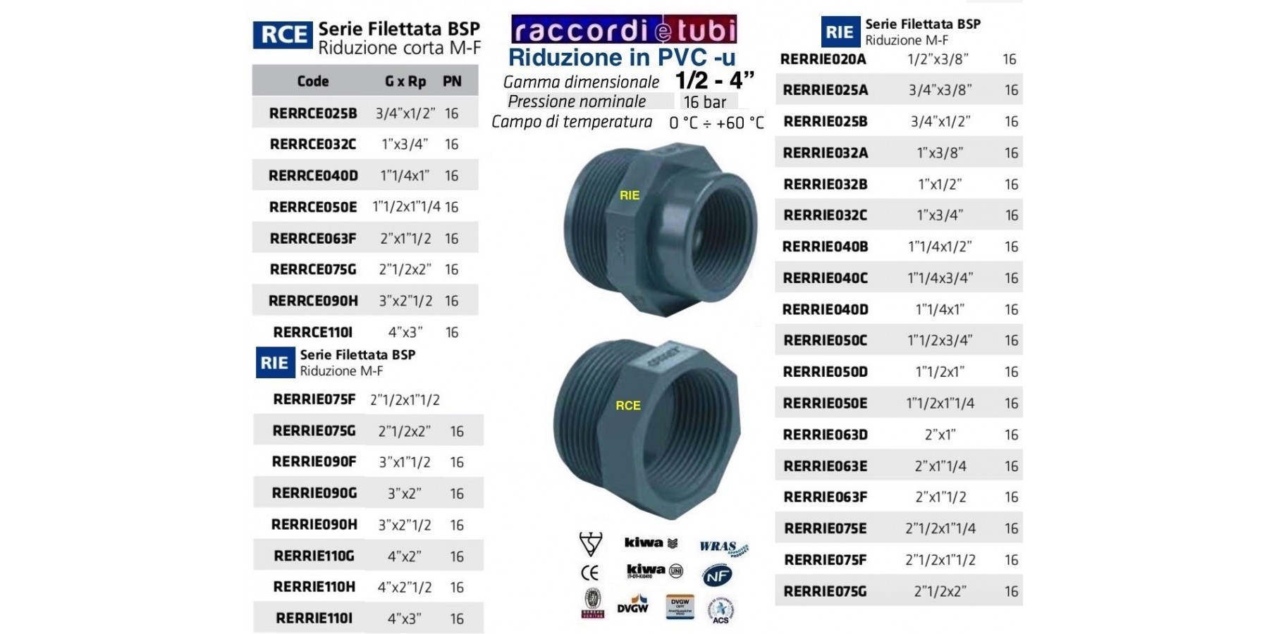 Riduzione MF in PVC-u serie corta e serie lunga secondo i diametri