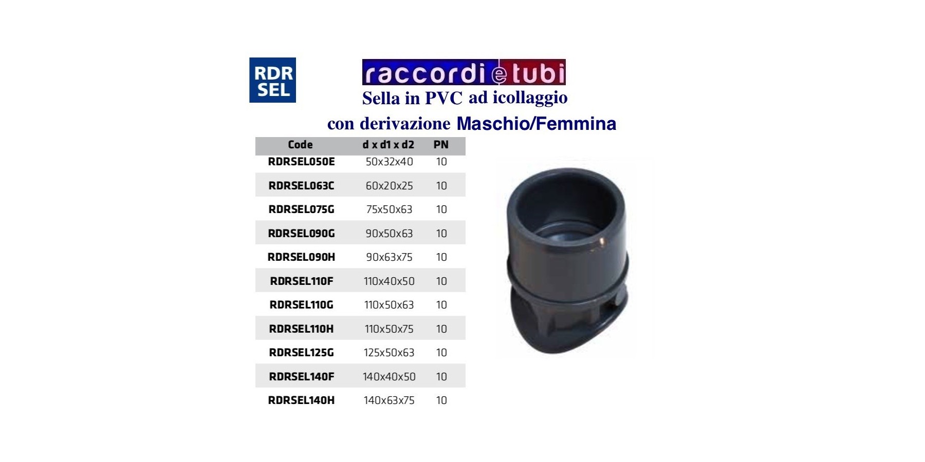 Sella in PVC ad incollaggio con derivazione Maschio Femmina a incollaggio ideale per la derivazione su tabazioni in PVC di Grossi diametri
