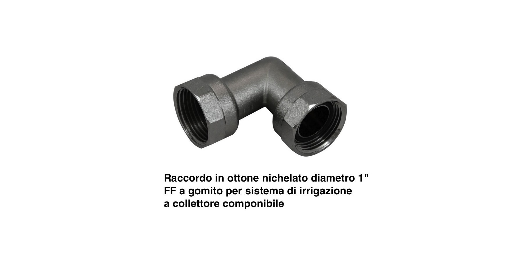 Raccordo in ottone Nichelato diametro 1" a gomito FF per sistema di irrigazione a collettore componibile