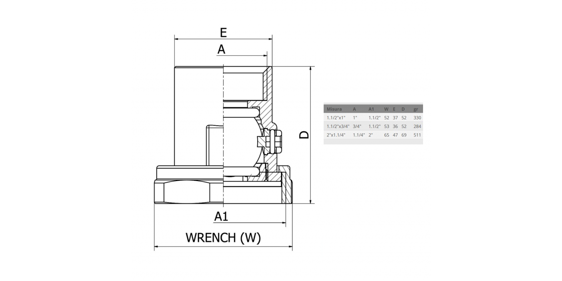 Bocchettoni per Circolatore CON CHIUSURA F1"1/2 x Uscita 1" F