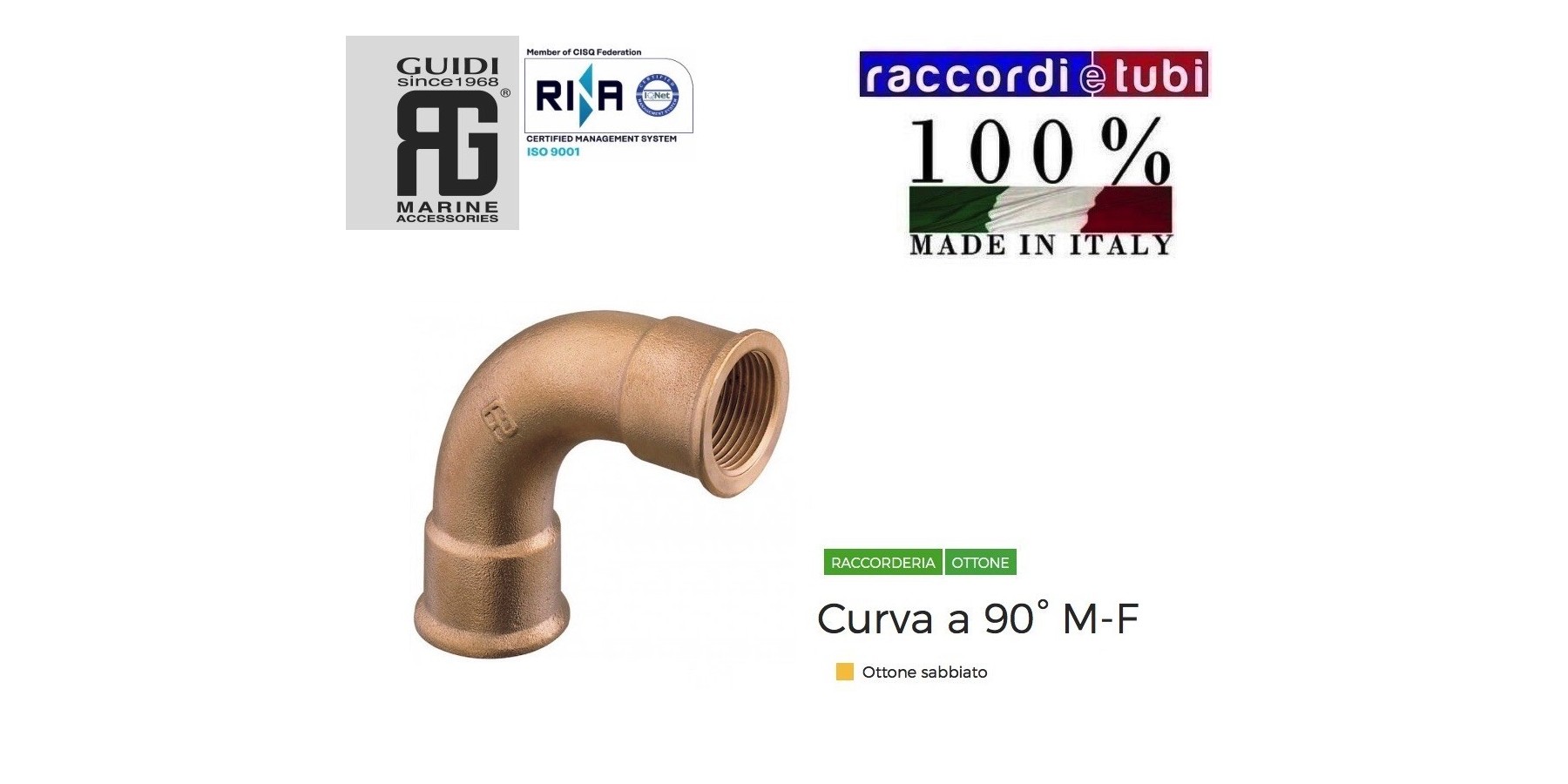 CURVA IN OTTONE A 90° FF IN OTTONE PESANTE FILETTO CONICO DELLA DITTA GUIDI