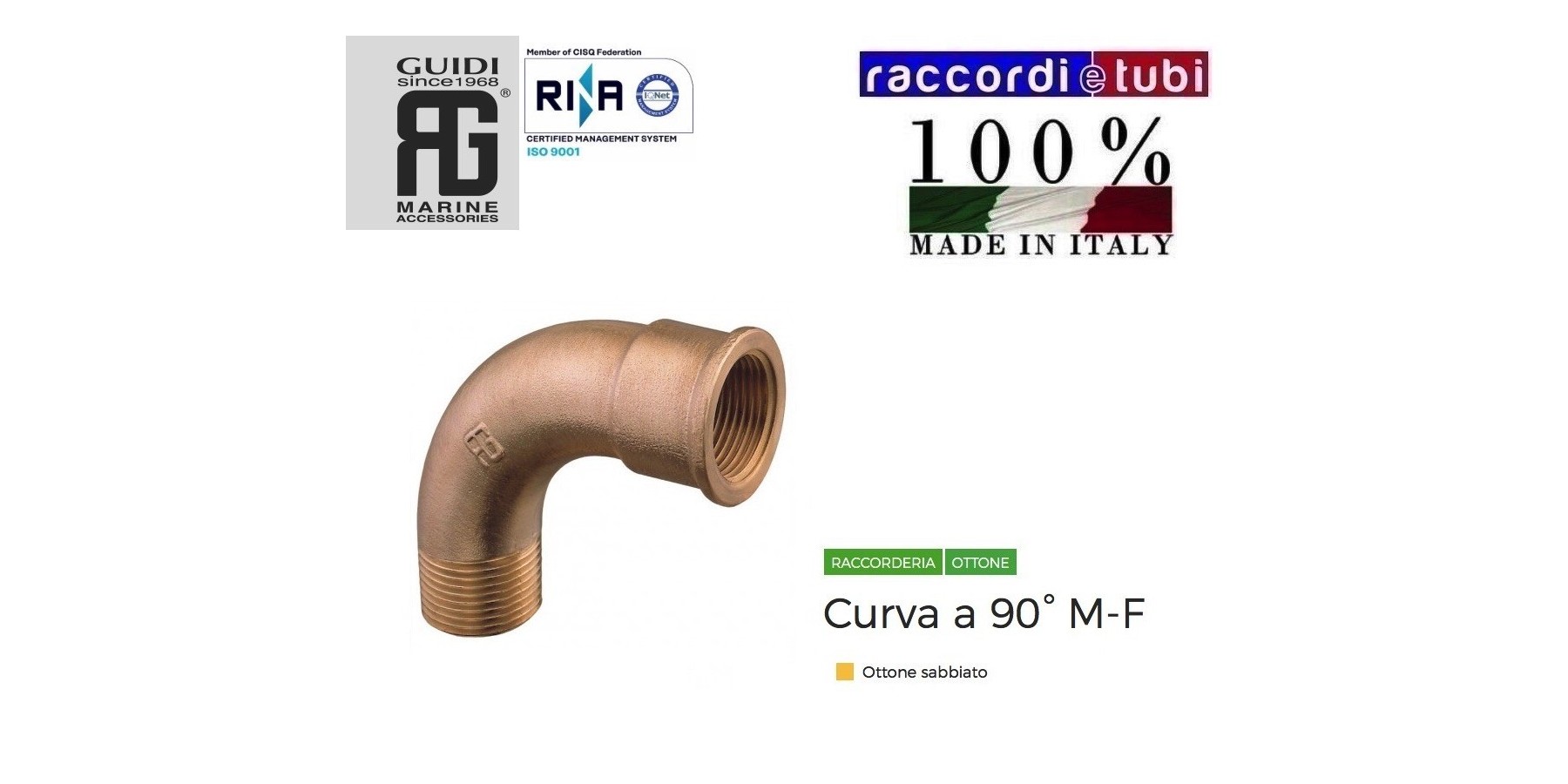 CURVA IN OTTONE A 90° MF IN OTTONE PESANTE FILETTO CONICO DELLA DITTA GUIDI