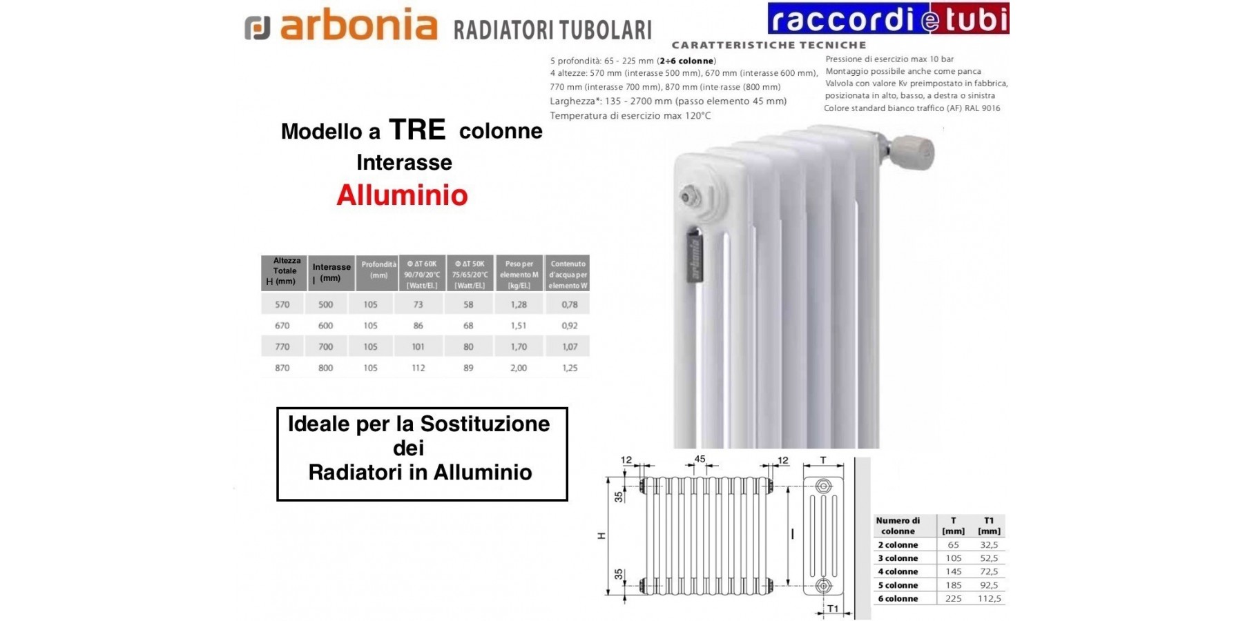 Impossibile non pensarci nella pianificazione moderna del riscaldamento: radiatori tubolari di Arbonia. Gamma di modelli e dimensioni esclusive - con 5 profondità. Performanti e comodi grazie al rapporto ideale fra calore irradiato e convezione. La forma chiara con elementi stondati assicura un rischio minore di infortuni e una maggiore possibilità di pulizia ed igiene. Tantissime possibilità di esecuzione speciale, permettono una integrazione completa in ogni tipologia di ambiente individuale.