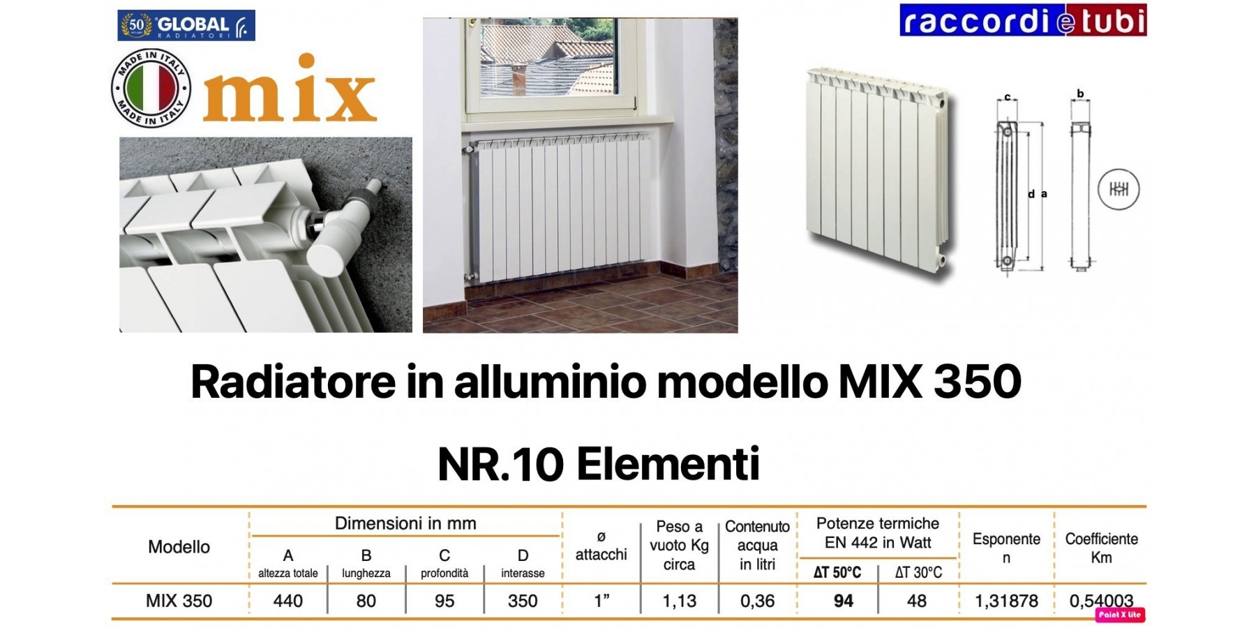 RADIATORE IN ALLUMINIO GLOBAL MIX 350 BATTERIA 10 ELEMENTI
