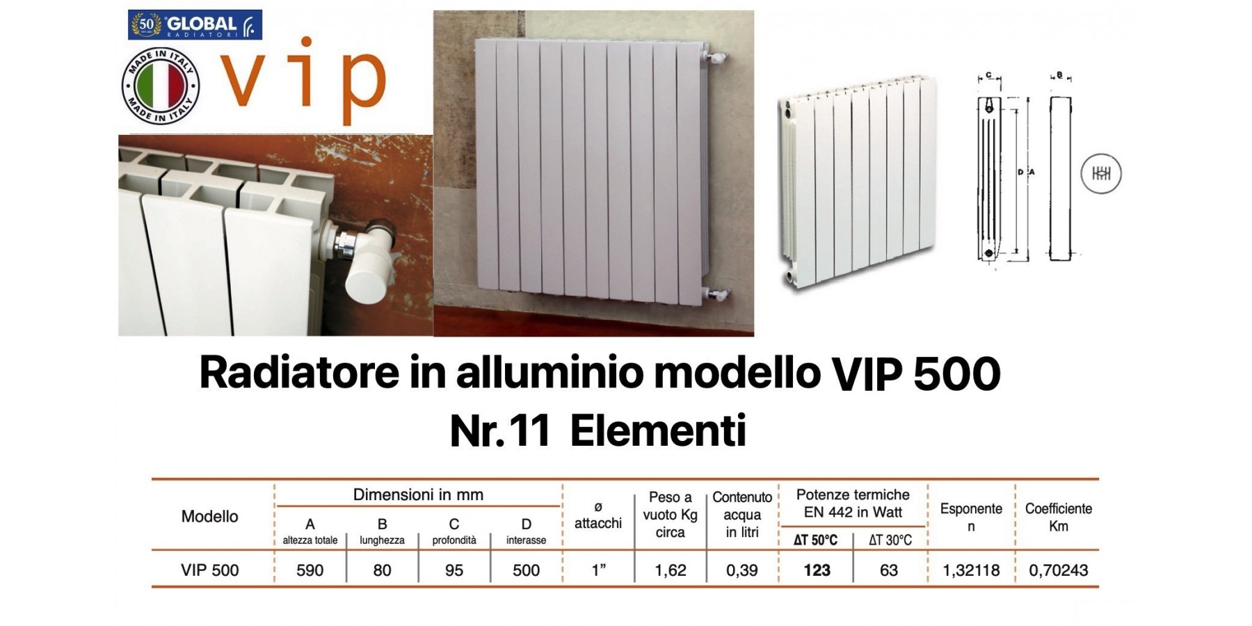 RADIATORE IN ALLUMINIO GLOBAL VIP 500 BATTERIA 11 ELEMENTI