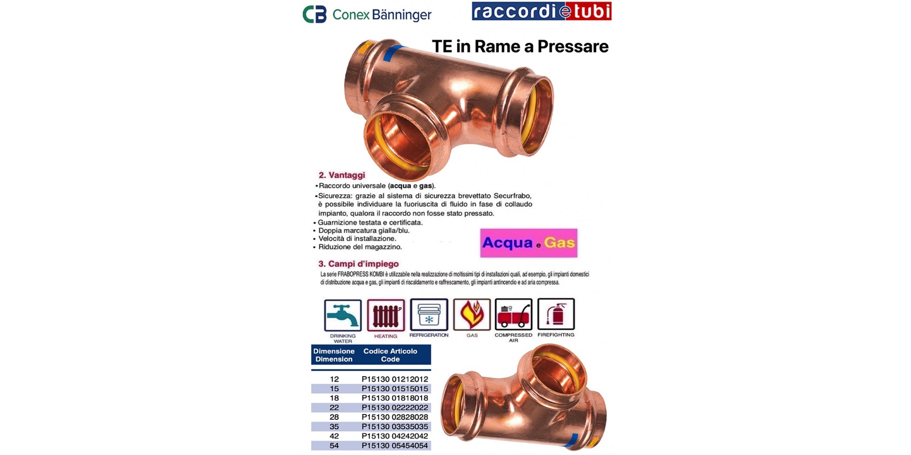 Idoneo per accoppiamento con tubi di rame duri, semi-duri e ricotti secondo EN- 1057