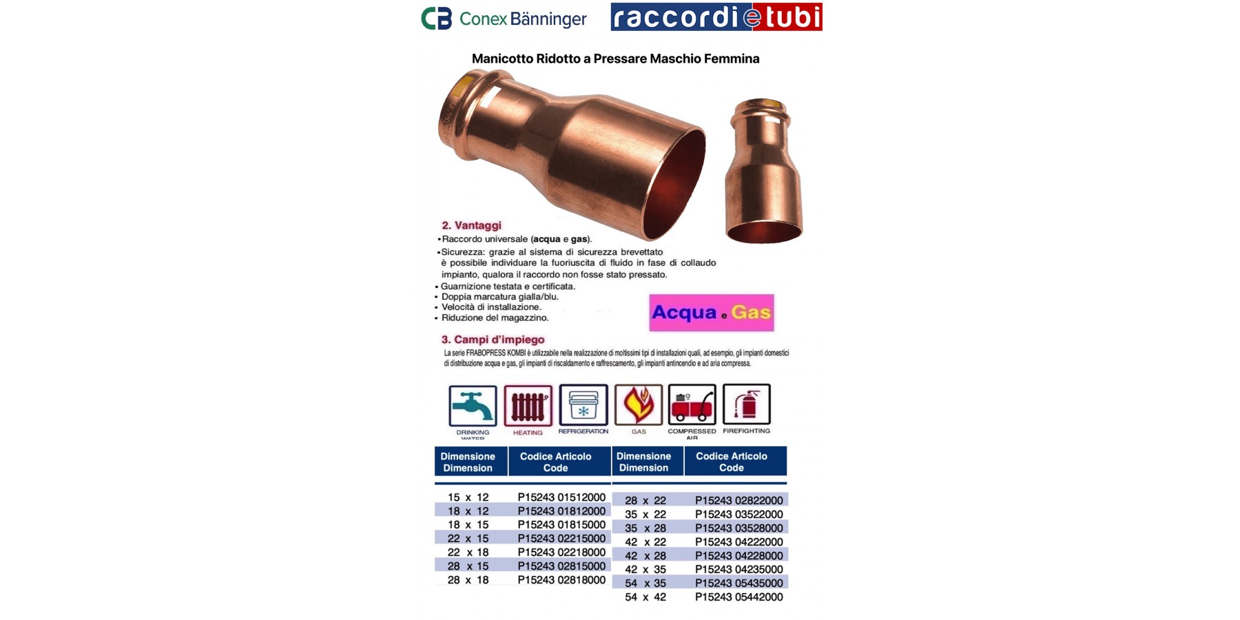 MANICOTTO RAME A PRESSARE RIDOTTO MF 42-22