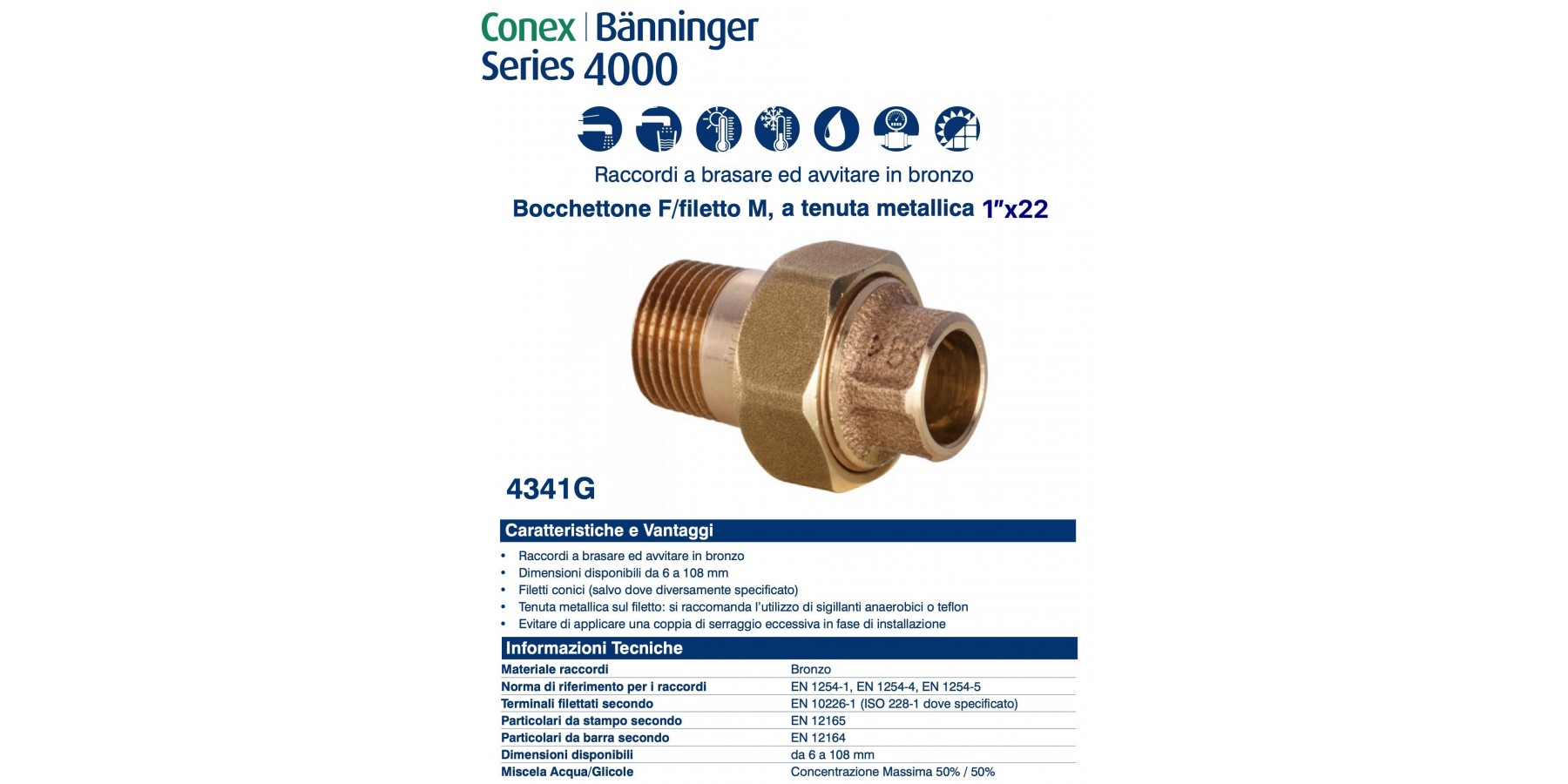La serie 4000 è un sistema di raccordi a brasare ed avvitare in bronzo.