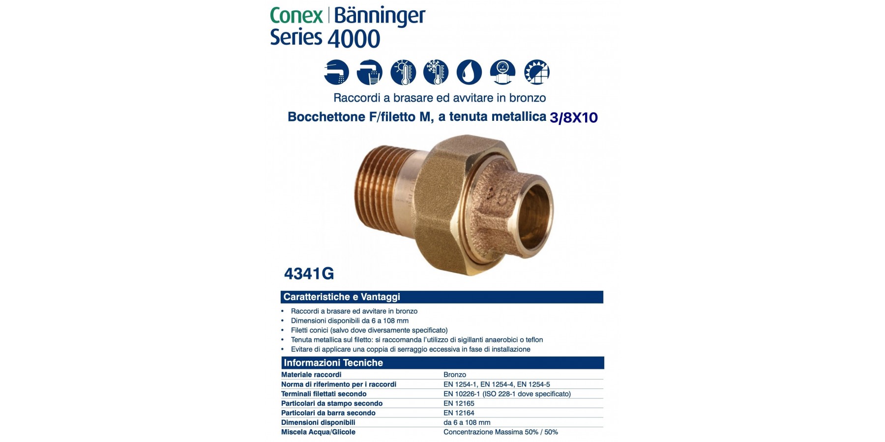 La serie 4000 è un sistema di raccordi a brasare ed avvitare in bronzo.