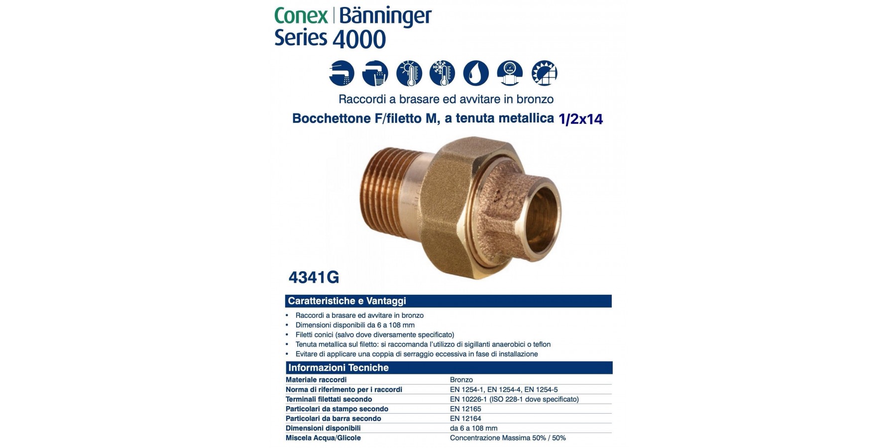 La serie 4000 è un sistema di raccordi a brasare ed avvitare in bronzo.
